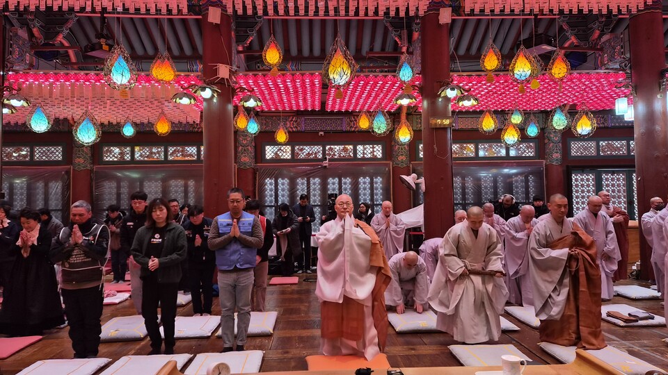 Most Ven. Jinwoo Performs 108 Prostrations on New Year's Day of the Year of the Fire Horse, Praying for an “Equal World”