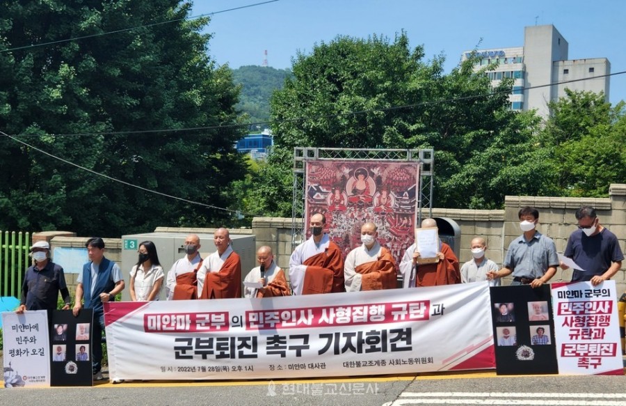 The Korean Buddhist community condemned the Myanmar military Junta’s execution of pro-democracy activists arrested for staging anti-coup protests.