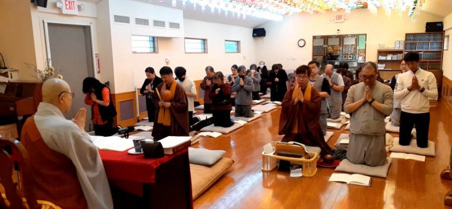 On Jan 1, to send off the past year and greet the New Year’s Day, Bohyeonsa Temple Dallas offered lit candles, 1,080 prostrations, bell ringing, and a morning Buddhist ceremony, while each participant made New Year’s vows. On Jan. 22, the Lunar New Year’s Day, all participants offered a joint memorial ceremony to mark the New Year, after which devotees offered New Year’s bows to all Buddhas, Bodhisattvas and monastics. They then shared rice cake and dumpling soup, mung bean pancakes, and assorted jeon, reminiscing of warm memories of their hometowns. On Feb. 26, they offered a precepts ceremony to mark the Buddha’s Renunciation Day, and entered their 10th spring practice period which lasted 49 days. The precepts ceremony has been an established regular annual event since Ven. Jiam took office as director of the temple’s Seon Center, making this the 10th such ceremony.